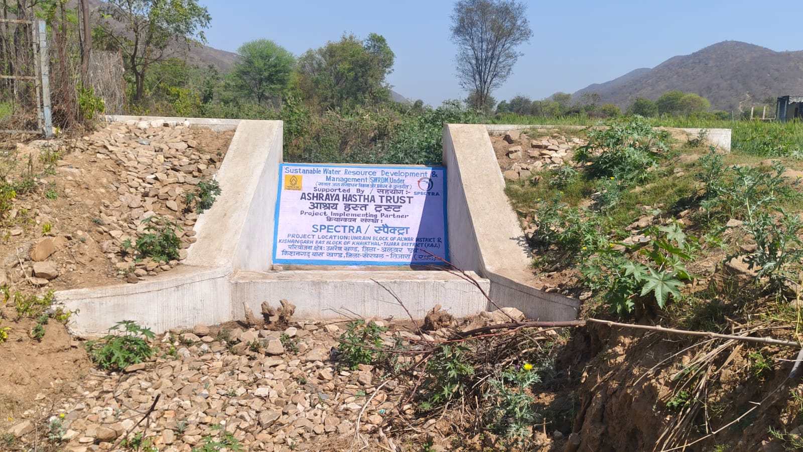 SPECTRA implements Water Resource Management projects throughout the districts of Alwar and Kotputli-Behror and Khairthal-Tijara. Our work aims to enhance water security by developing watersheds and conducting plantation drives and building water recharge structures and restoring traditional water bodies which include ponds. The team works to achieve three main goals which include boosting groundwater resources and increasing agricultural water supply and establishing permanent climate resilience measures for rural communities.